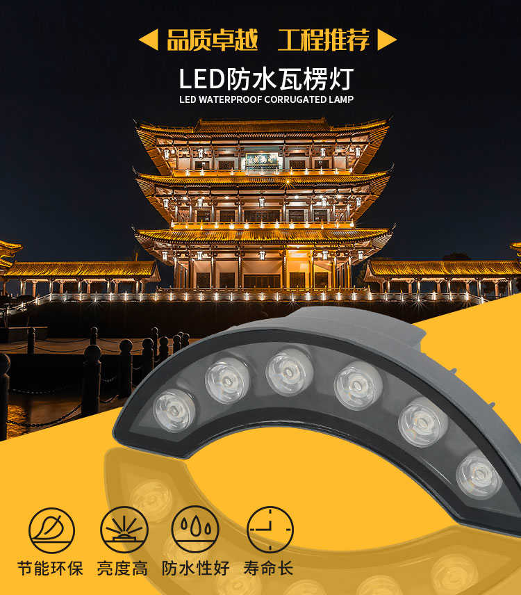 LED瓦楞燈戶外防水月亮燈涼亭瓦面投射燈